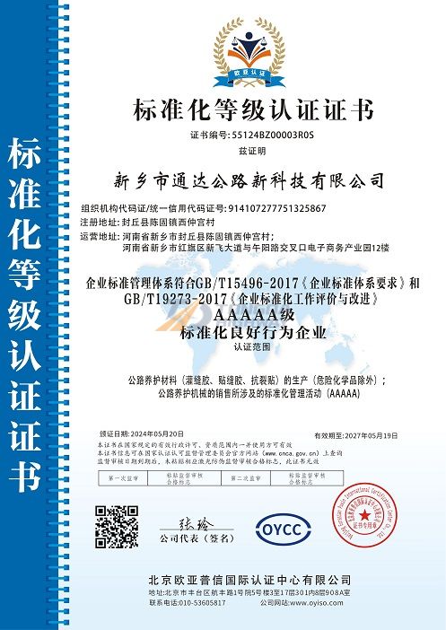 標(biāo)準(zhǔn)化等級(jí)認(rèn)證證書(shū)